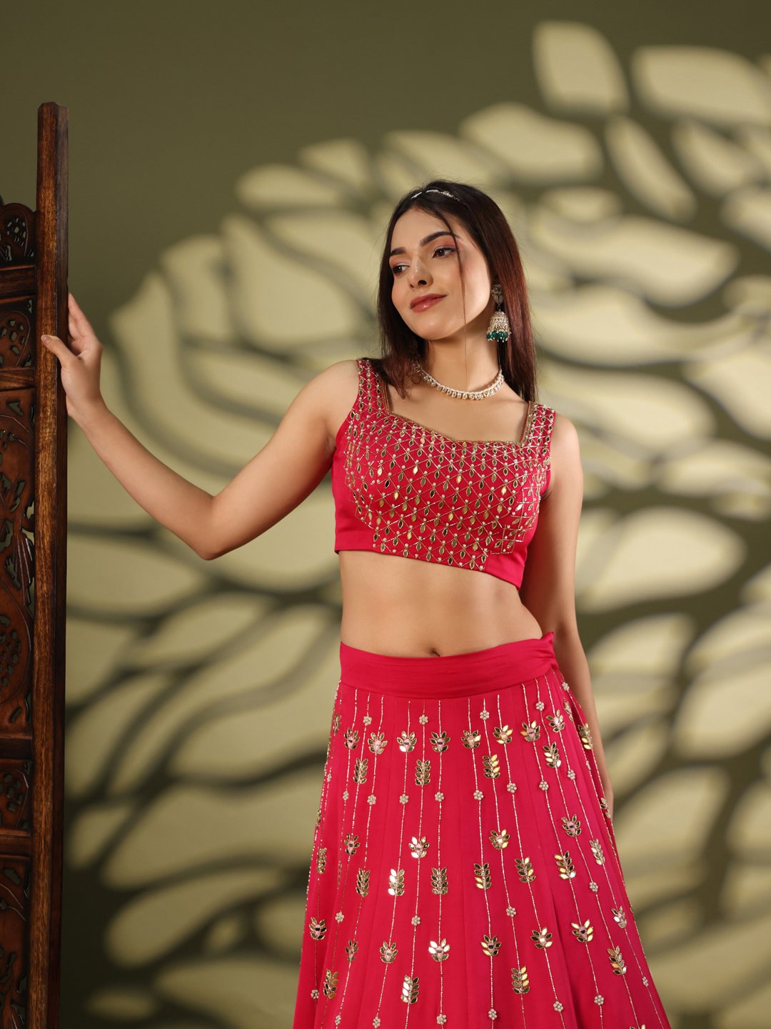 1 review for Lehanga With Mirror Work in Modal Satin and Organza Rose Pink