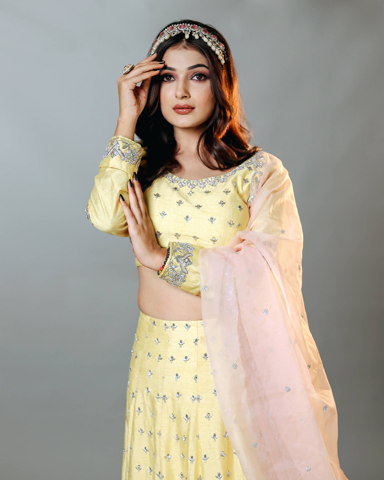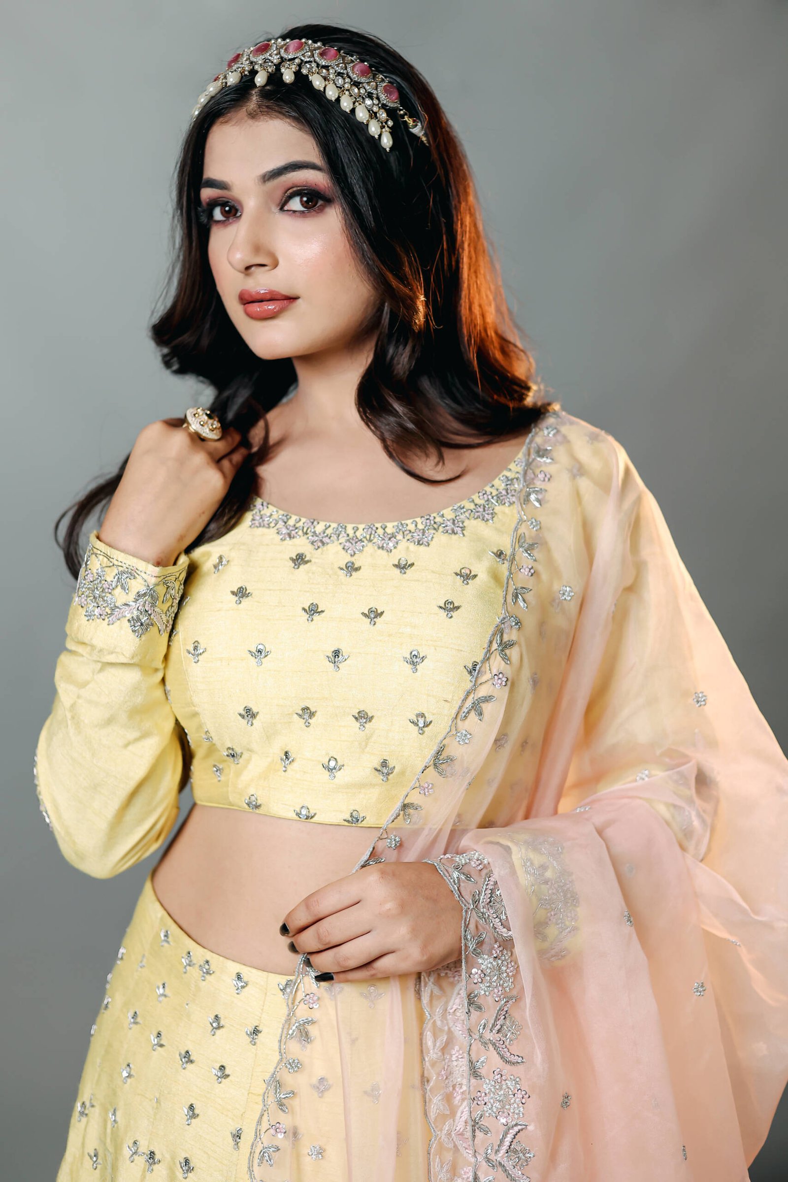 HomeWomenLehengaPastel Lehanga With Silver Dabka Work in Raw Silk Powder Yellow & Pastel Pink Pastel Lehanga With Silver Dabka Work in Raw Silk Powder Yellow & Pastel Pink₹68,400.00 Pastel Lehanga With Silver Dabka Work in Raw Silk Powder Yellow & Pastel Pink quantity Buy now Add to WishlistRemove from Wishlist Add to Wishlist SKU: PLRSYP1 Categories: Lehenga, Party outfits Product ID: 2339 Description Additional information Reviews (0) Description Additional information Fabric Details Raw Silk No. of Pcs in Dress 3 Reviews There are no reviews yet. Be the first to review “Pastel Lehanga With Silver Dabka Work in Raw Silk Powder Yellow & Pastel Pink” Cancel reply0.0/5Your email address will not be published. Required fields are marked *Name * Email * Save my name, email, and website in this browser for the next time I comment. Your rating * Rate… Perfect Good Average Not that bad Very poor Your review * I agree that my submitted data is being collected and stored. * Related products Add to WishlistRemove from Wishlist Add to Wishlist Lehanga With 3D Applique Flowers With Bead & Sequin Embroidery in Organza Royal Blue ₹88,500.00 Buy now Add to WishlistRemove from Wishlist Add to Wishlist Lehanga With Mirror Work in Modal Satin and Organza Rose Pink ₹78,500.00 Rated 5.00 out of 5Buy now Add to WishlistRemove from Wishlist Add to Wishlist Anarkali With Jacket With Floral Resham Work in Organza Black ₹31,800.00 Buy now Add to WishlistRemove from Wishlist Add to Wishlist Sharara Suit With Mirror and Kodi Work in Georgette Green ₹24,300.00 Buy now Add to WishlistRemove from Wishlist Add to Wishlist Lehanga With Quirky & Vibrant Resham Work in Organza Pastel Pink Peach ₹56,700.00 Buy now